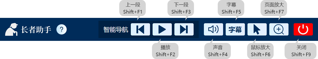 网站提供了“智能导航”、“语音指读”、“字幕显示”、“鼠标放大”、“页面放大”等长者浏览服务。