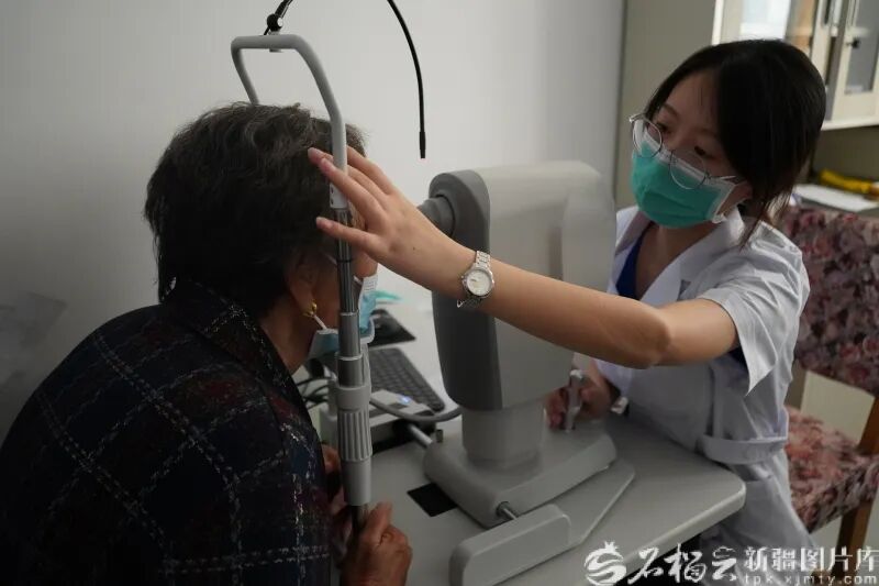 锦州医科大学援疆“光明行”医疗队进驻裕民县人民医院,给群众检查眼睛。图/塔城地区融媒体中心提供