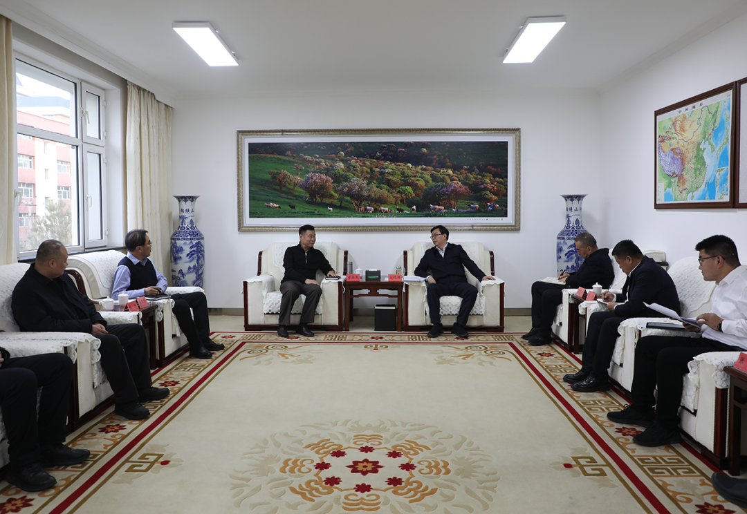 11月12日,地委书记支现伟与蒙鲲(天津)集团有限公司、中国物流集团中铁现代物流科技股份有限公司北京分公司(含新疆区域)和天津分公司、中食智农(北京)科技有限公司等企业家组成的考察团一行座谈。塔城地区融媒体中心记者苏珊琳摄