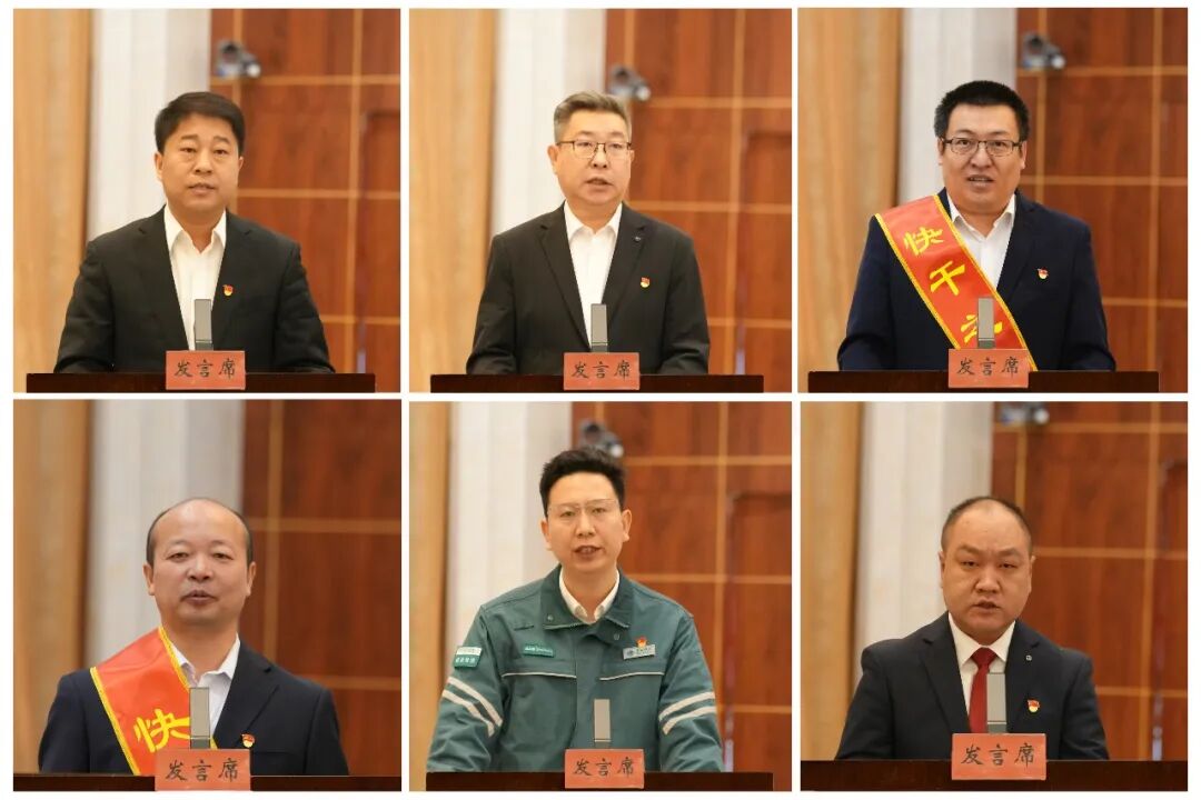 会议播放了2025年地委“实干争先年”主题活动汇报片;裕民县委、地区市场监督管理局、地区发改委固定资产投资科、地区财政局财源办、国网托里县供电公司供用电部负责同志作典型发言,海华(新疆)纺织有限公司负责人作为企业代表发言。