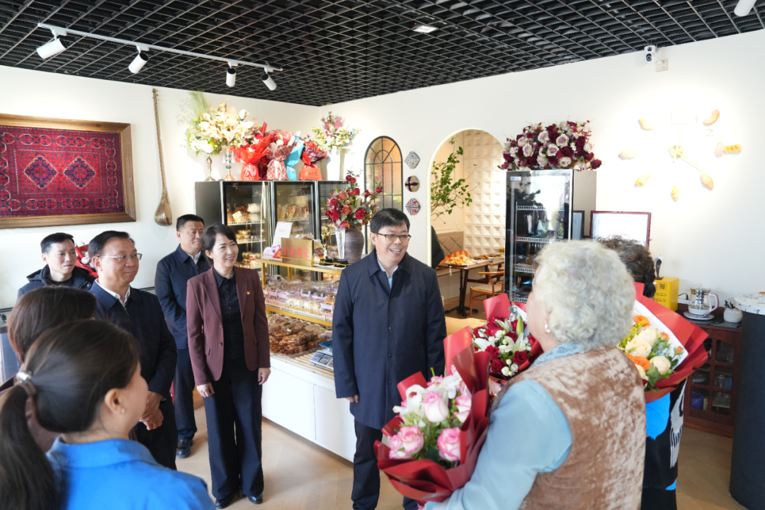 支现伟来到塔城市公安局110接警中心、热孜万特色糕点店,亲切看望慰问自治区三八红旗集体代表、自治区“五好家庭”获得者热孜万·买买提和“爱心妈妈”党支部成员,并通过她们向全区广大妇女同胞致以节日的祝贺和美好的祝福。他强调,要珍惜荣誉、再接再厉,不断提升专业服务水平,着力提高接警接通率、警情处置率和快速出警率,为维护社会和谐稳定、保障各族群众生命财产安全贡献力量。他勉励大家要继续发挥示范作用,以党建为引领,带动更多妇女学习实用技能、增强就业能力,持续关爱帮扶困难群体,传递社会温暖,切实让各族群众感受到祖国大家庭的温暖。