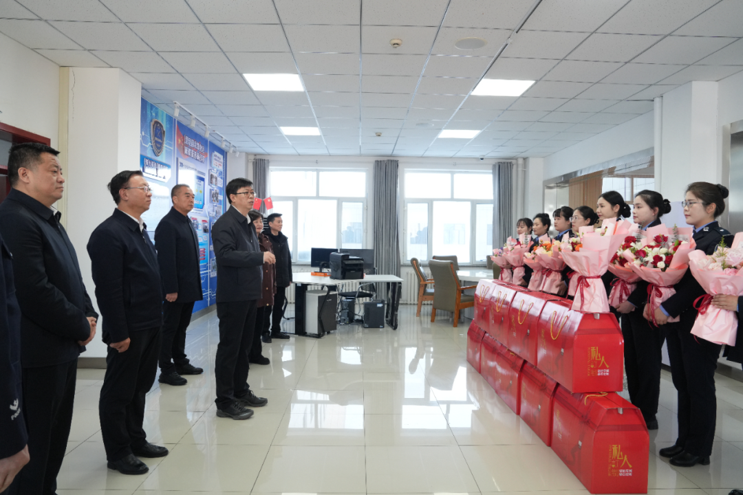 3月4日,地委书记支现伟来到塔城市公安局110接警中心,看望慰问自治区三八红旗集体代表。塔城地区融媒体中心记者刘洪辰摄