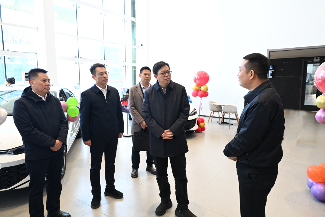 3月12日,地委书记支现伟在盛阳汽车城—领创汽车销售服务有限公司,深入展厅、售后车间实地了解汽车销售、市场拓展等情况。塔城地区融媒体中心记者刘洪辰摄