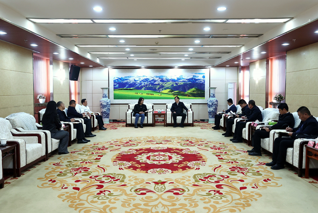 4月23日,地委书记支现伟会见河南贝迪塑业(集团)有限公司董事长王新民一行。塔城地区融媒体中心记者苏珊琳摄