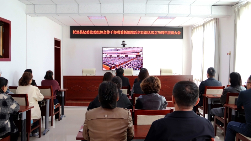 9月25日10时30分,新疆维吾尔自治区成立70周年庆祝大会隆重举行,托里县各族干部群众集中收看直播,共同见证这一振奋人心的历史时刻。