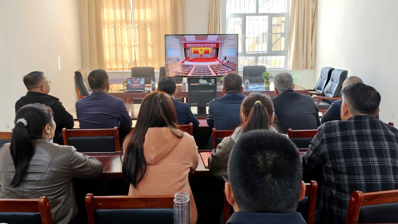 托里县退役军人事务局、残疾人联合会集中观看直播