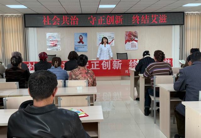 托里县托里镇金烁社区携手托里县疾病预防控制中心共同举办“社会共治 守正创新 终结艾滋”健康教育宣传讲座。
