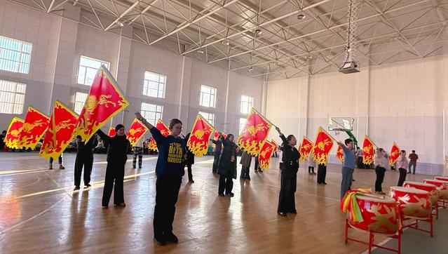 “注意脚下步伐要稳,把那股欢喜劲儿从心里扭出来!”走进排练现场, 领队老师的声音穿透喧闹的人群,耐心指导着彩绸鼓韵贺新春舞蹈队的队员们。只见队员们身着艳丽的民族服饰,彩绸在手中随着鼓点翻飞起舞,不时在空中划出优美弧线,宛如一道道流动的彩虹。身旁的鼓手们身姿挺拔、精神饱满,整齐划一地挥臂击鼓,“咚咚锵、咚咚锵” 的鼓声时而沉稳厚重,时而激昂高亢,每一个动作都刚健舒展,传递出全镇上下蓬勃向上的精神风貌。