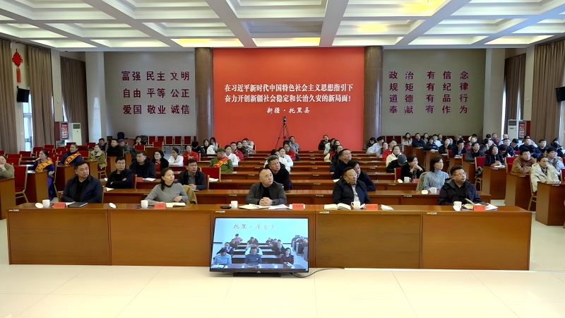 达吾列提·帕尔尤拉、别凯西·巴扎尔汗、谭军、程文纪、马晓亮、叶尔波力·山拜、贾纳提·朱曼等县四套班子在家领导;企业单位、宣讲员、草根宣讲员、理论工作者等在现场聆听宣讲;各乡镇、村、社区以电视电话会议形式参加宣讲活动。