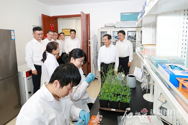 8月11日,自治区党委书记、兵团党委第一书记、第一政委陈小江在位于昌吉市的中国农科院西部农业研究中心,了解科技研发促进农业增效、农民增收情况。天山网-新疆日报记者 崔志坚摄