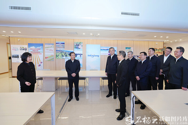 11月7日,自治区党委书记、兵团党委第一书记、第一政委陈小江在新疆日报社,察看新疆国际传播中心运营成效。天山网-新疆日报记者 崔志坚摄
