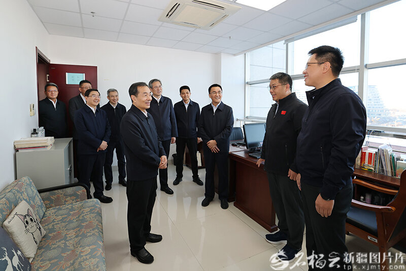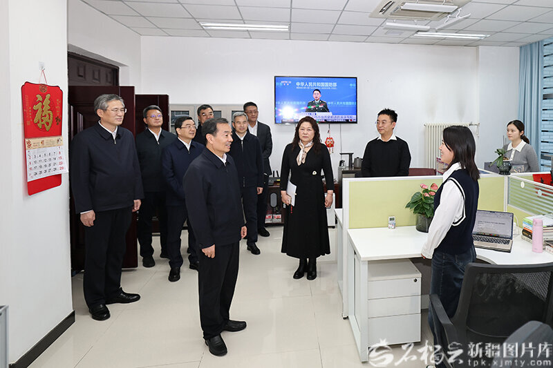 11月7日,自治区党委书记、兵团党委第一书记、第一政委陈小江在新华社新疆分社,了解新闻信息产品,看望慰问一线采编人员。天山网-新疆日报记者 崔志坚摄