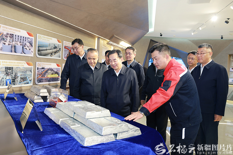 3月25日,自治区党委书记陈小江、自治区主席艾尔肯·吐尼亚孜在位于洛浦县的和田昆冈经济技术开发区,实地了解新疆昆仑锌业有限责任公司生产运营情况。天山网-新疆日报记者 崔志坚摄